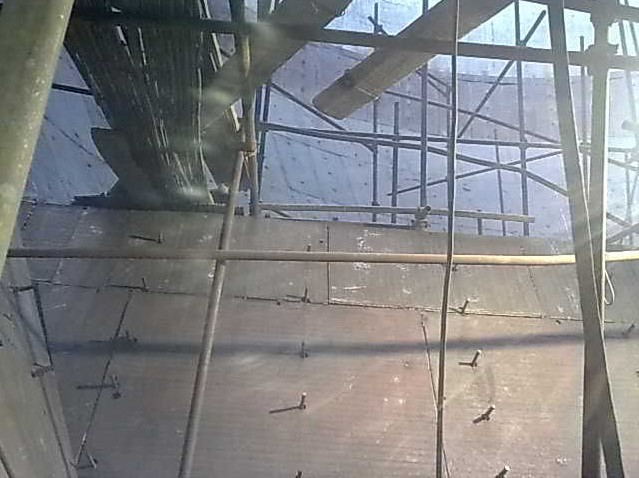 圖(1)為北京耐默公司生產(chǎn)的耐磨復(fù)合鋼板在內(nèi)蒙古某煤倉安裝現(xiàn)場